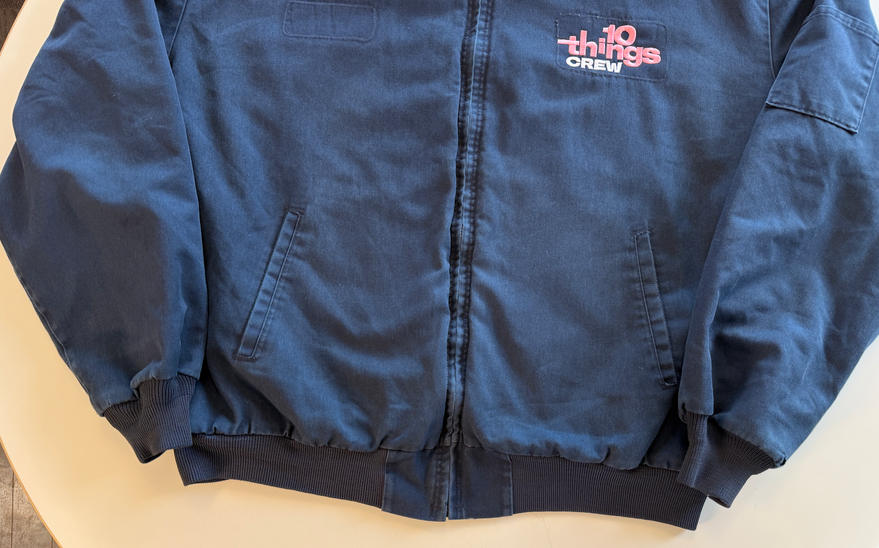 A vintage canvas work jacket with a quilted interior