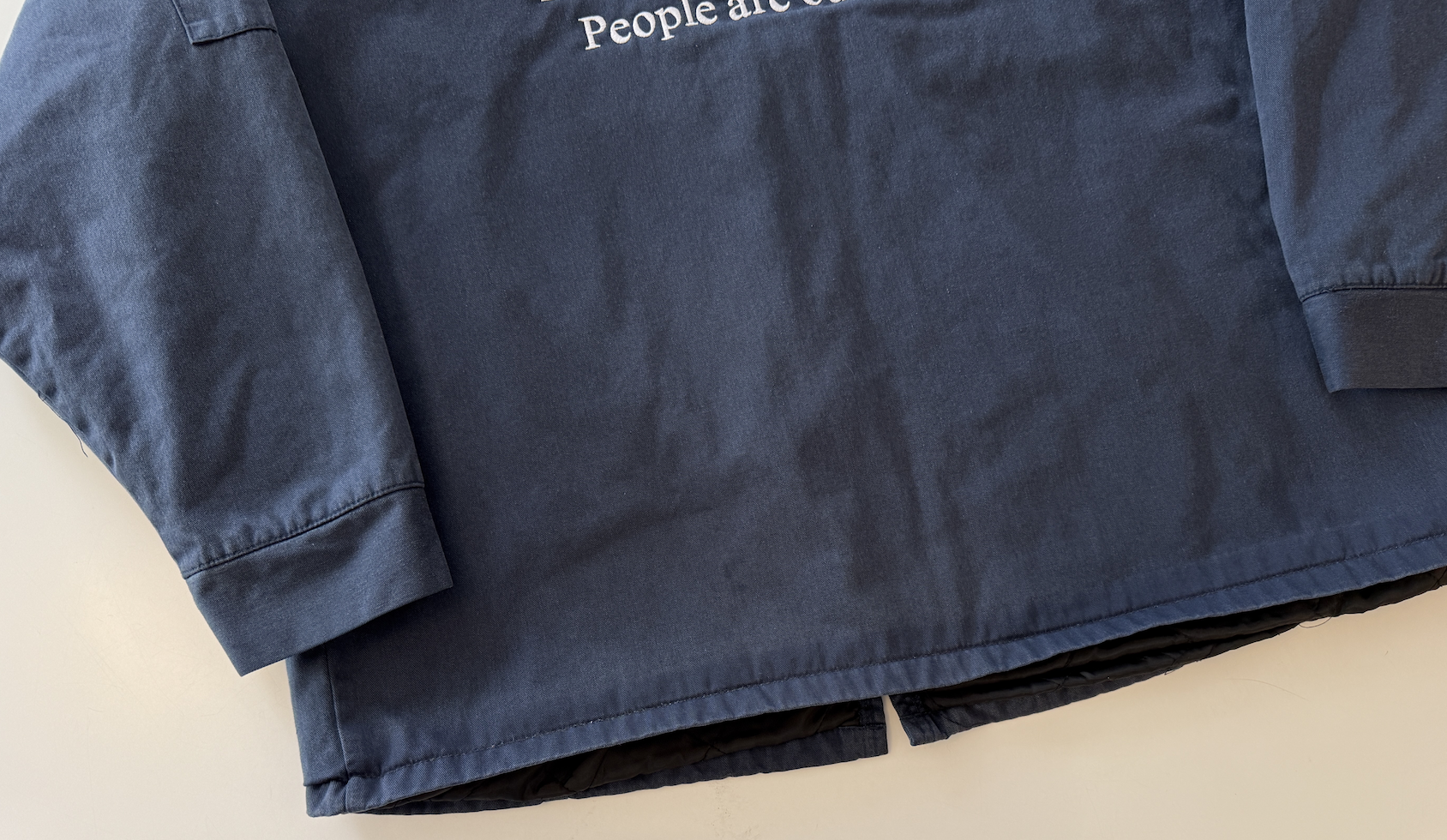 A vintage canvas work jacket with a quilted interior