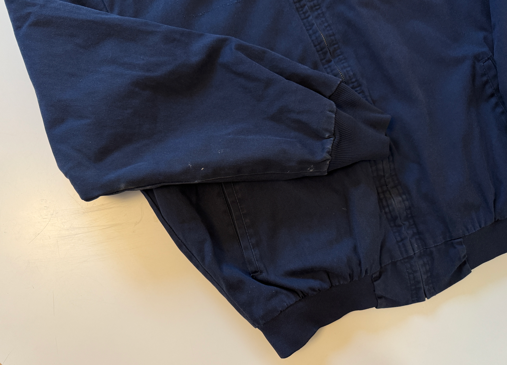 A vintage canvas work jacket with a quilted interior